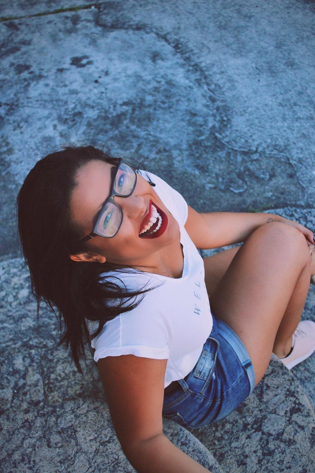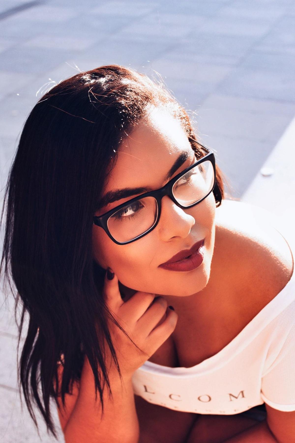 Retrato em plano plongé, mostrando o rosto da Izabelle.